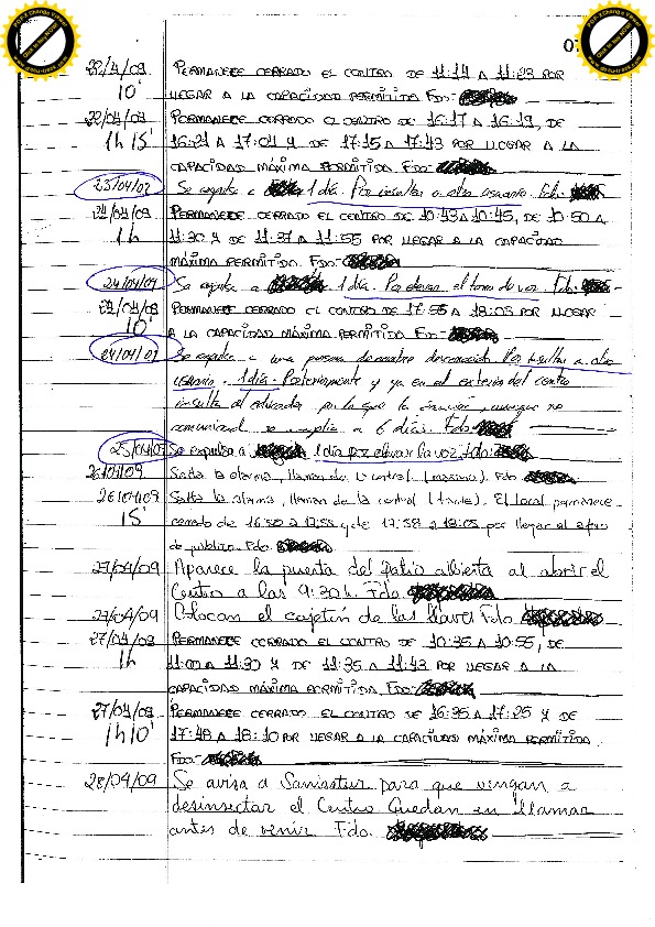 01/08/09 Tres días por alzar la voz insistentemente acusando de robo a otro usuario. No quiso abandonar el centro