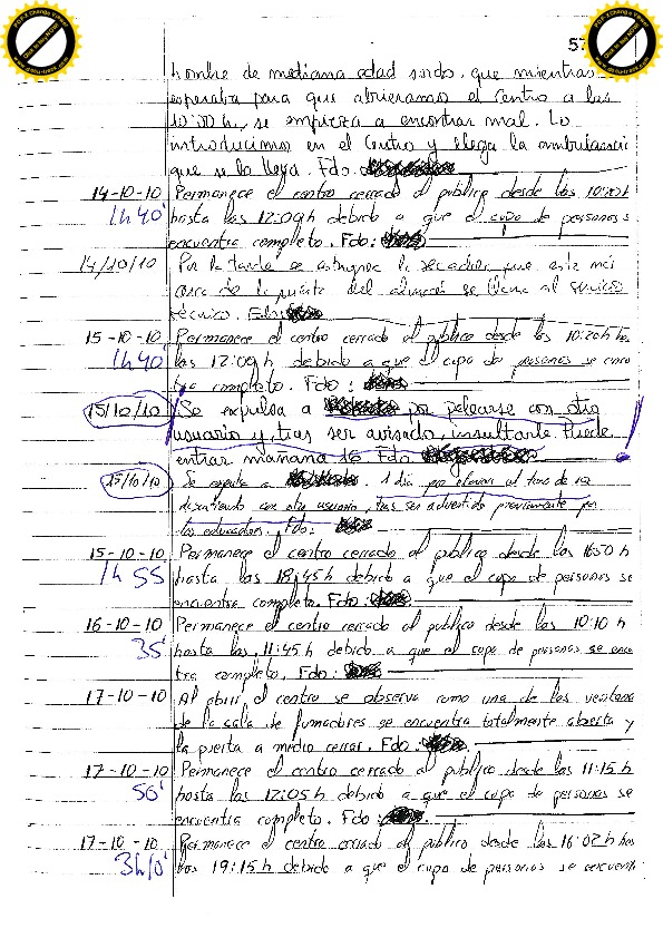 06/10/10 Un día por dar un golpe en la mesa e increpar a un usuario