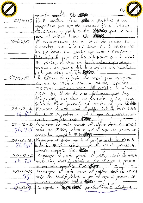 05/12/10 X días por no querer abandonar el centro a la hora de cierre e increpar al vigilante