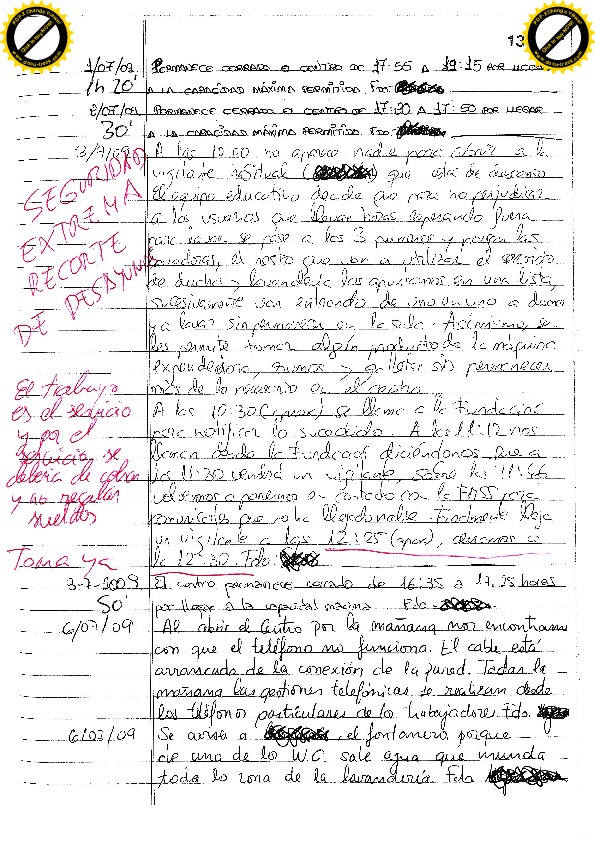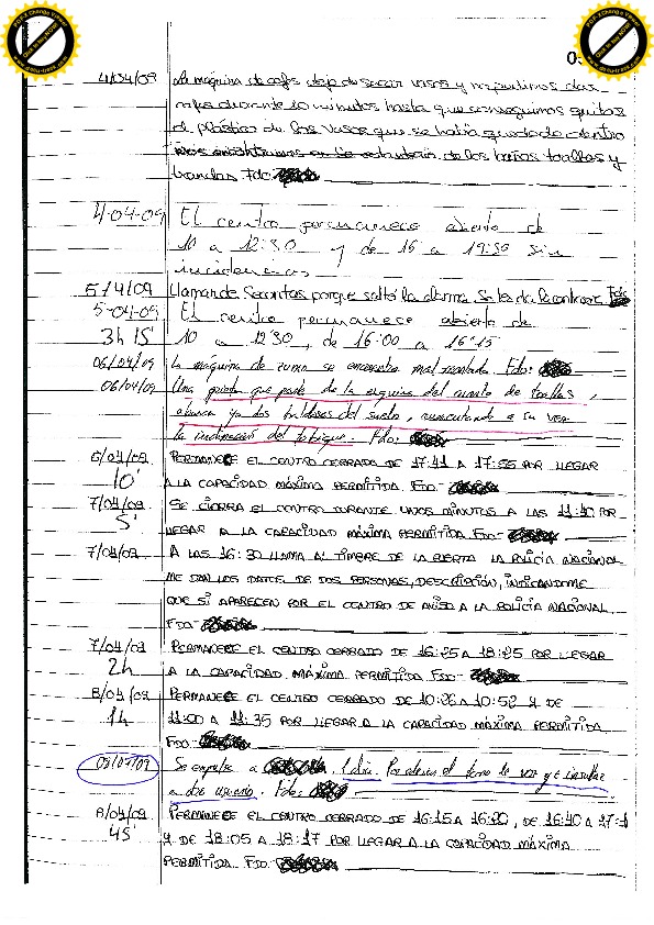 17/07/09 Vuelve el usuario que rompió el cristal. Intenta entrar, forcejea con el vigilante, mete la cabeza pero consiguen echarlo.