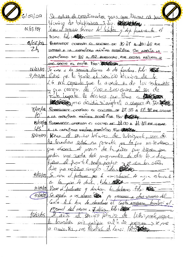 12/08/10 Cinco días más. El usuario expulsado vuelve y como no le dejan entrar, empieza a llamar al timbre sin parar y a golpear la puerta. Se llama a la Policía