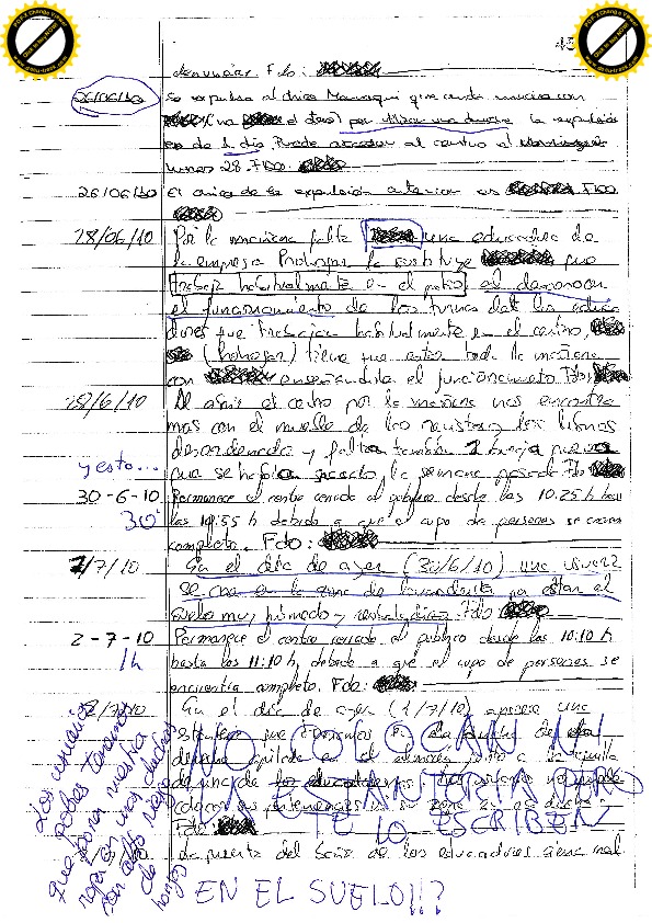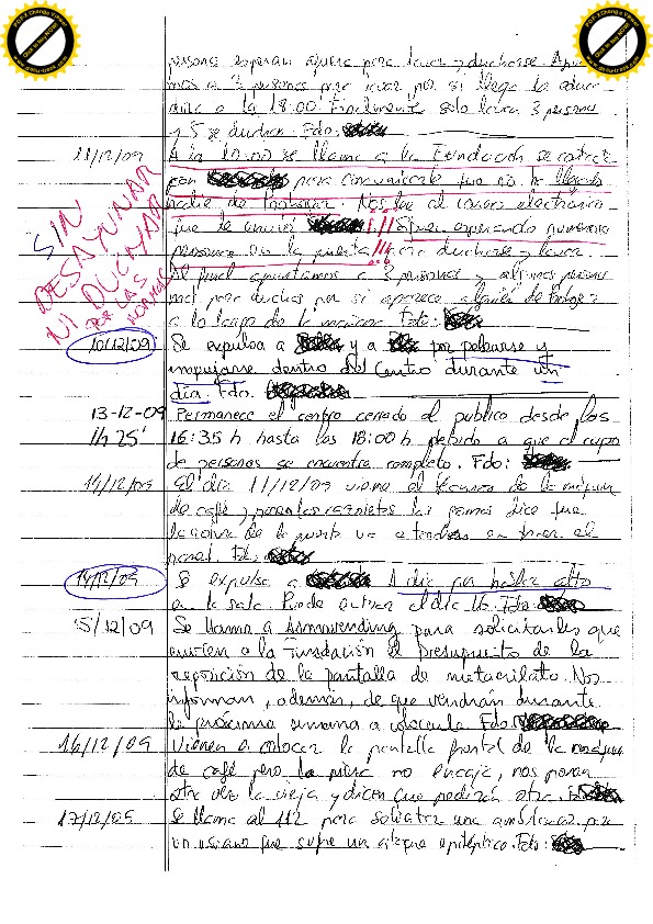 Al inicio de la lectura del listado, se puede sentir comprensión por el trabajo de los pobres Trabajadores Sociales y los Vigilantes de Seguridad de Eulen, pero según se va profundizando en el mismo, se hace evidente el maltrato psicológico continuado que denuncio y expresado en algunas de sus valientes parrafadas.