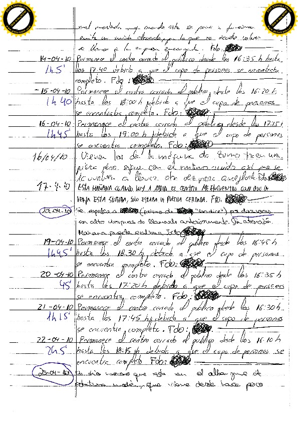 16/08/10 Dos días por elevar el tono de voz, hacer comentarios despectivos del centro y de otros usuarios